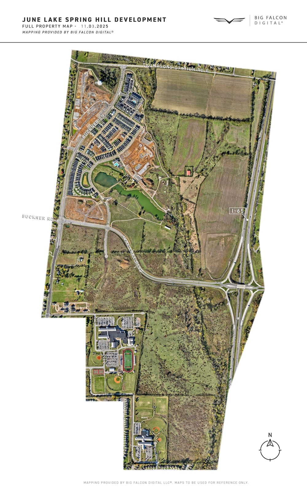 Captured 11/03/25: High res orthomosaic map of the 775-acre June Lake development. Utilized to update stakeholders on progress and document milestones.